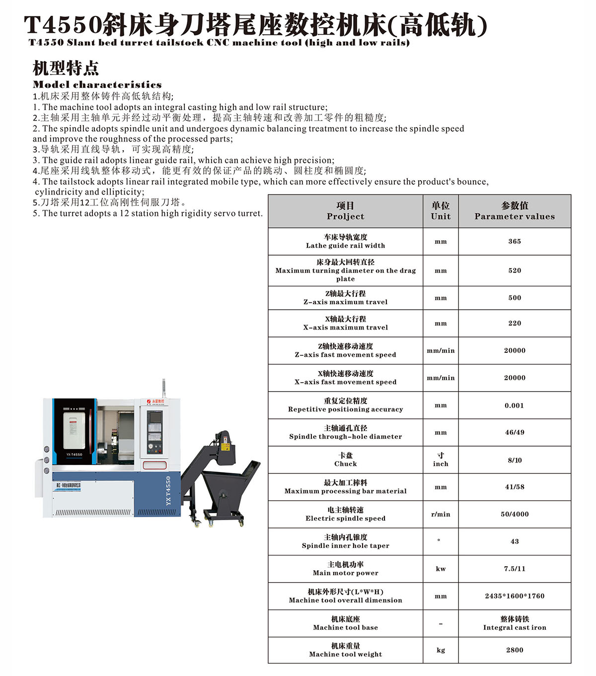 T4550斜床身刀塔尾座数控机床(高低轨)
